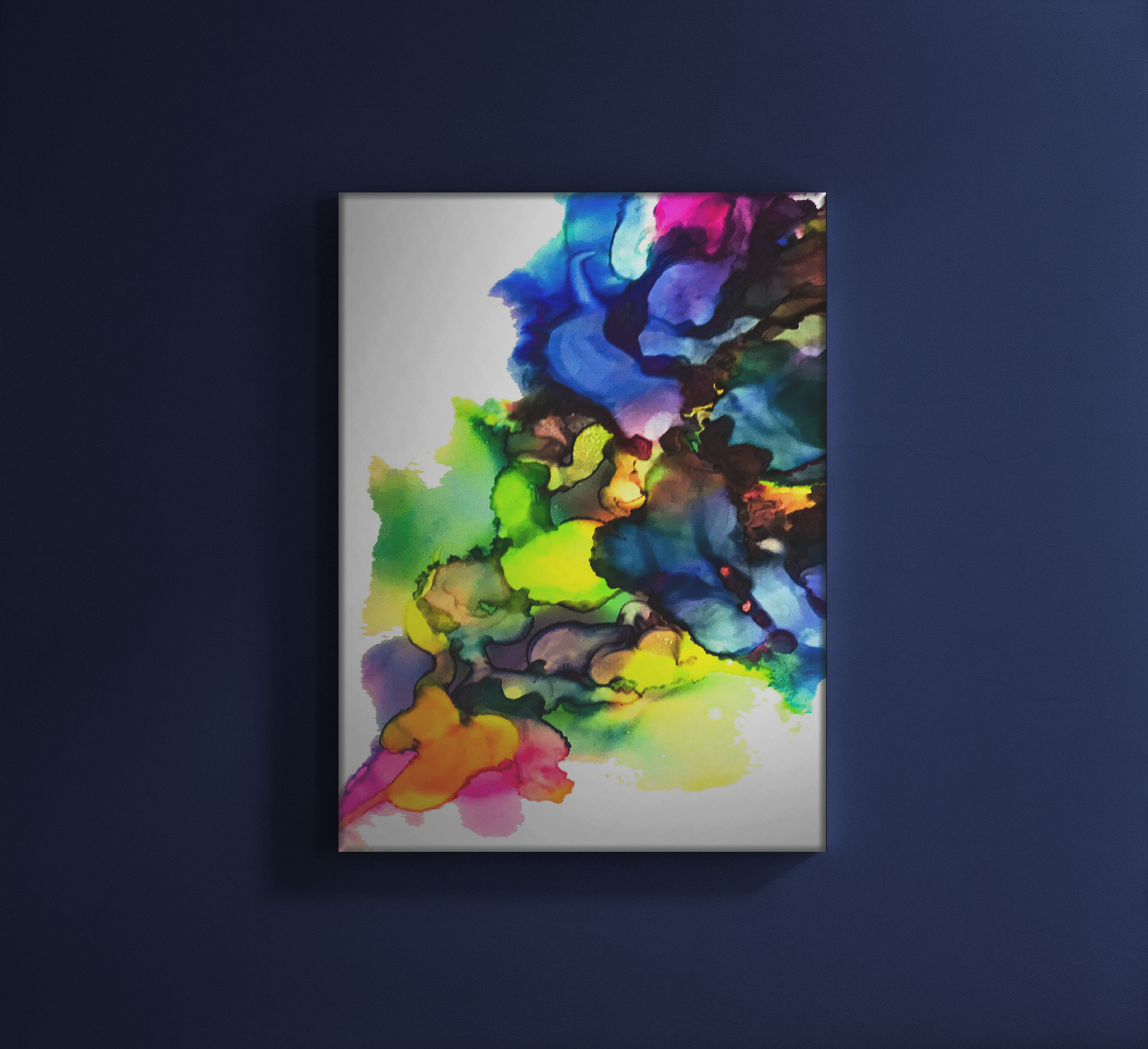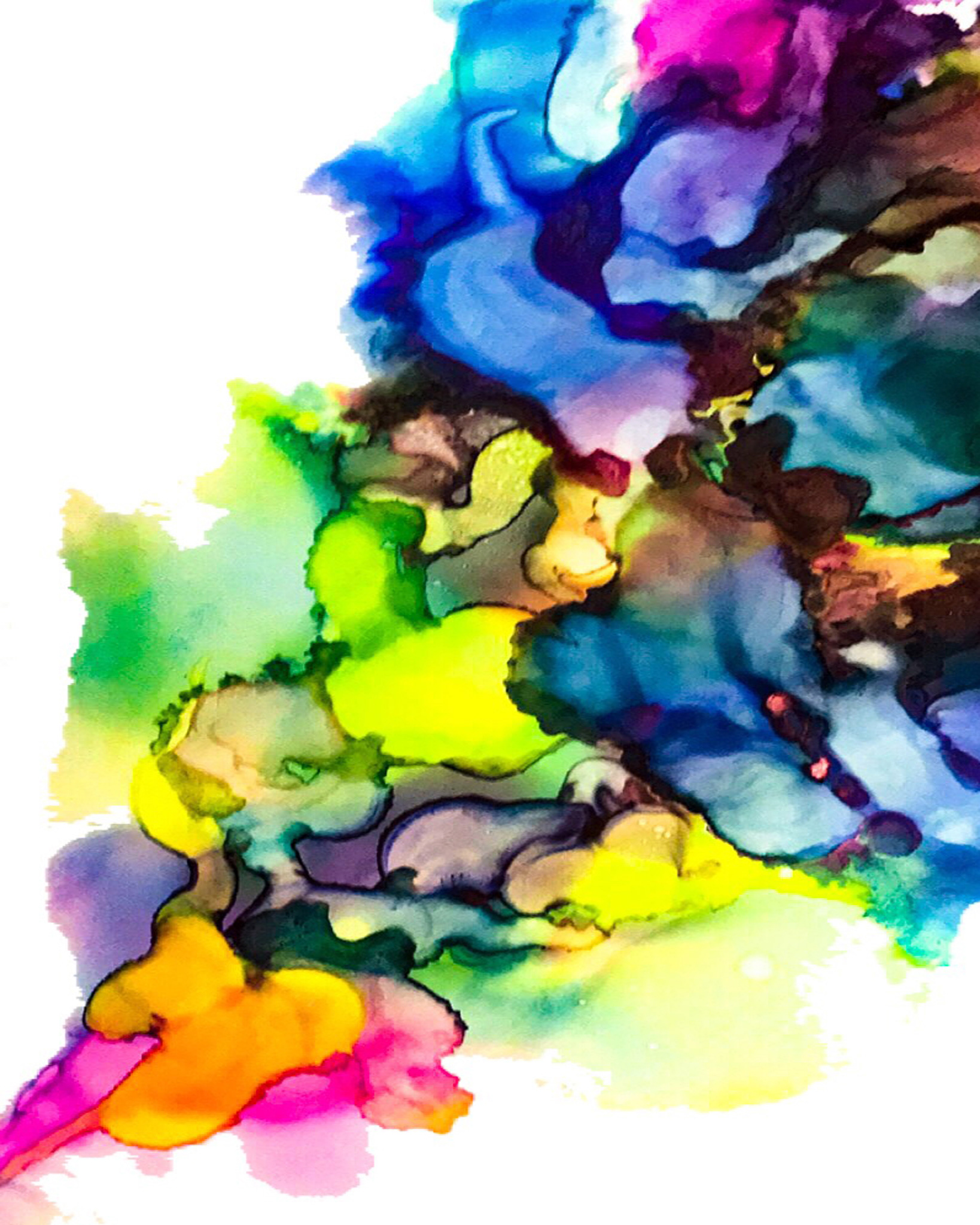 Drift is one in a cryptic tryptic series created with custom airbrush inks. Clouds of smoke pareidolia lead to ethereal findings.