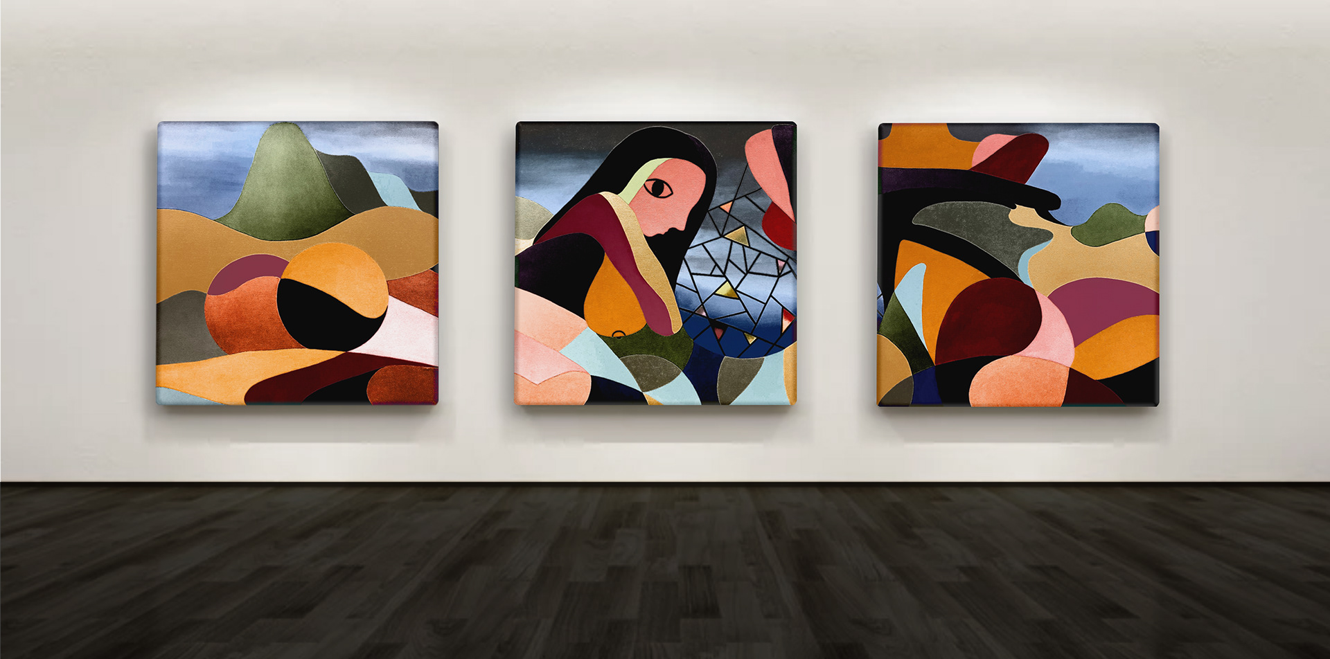 36"x36" Tryptic. Acrylic Paint on Gallery Wrapped Canvas.