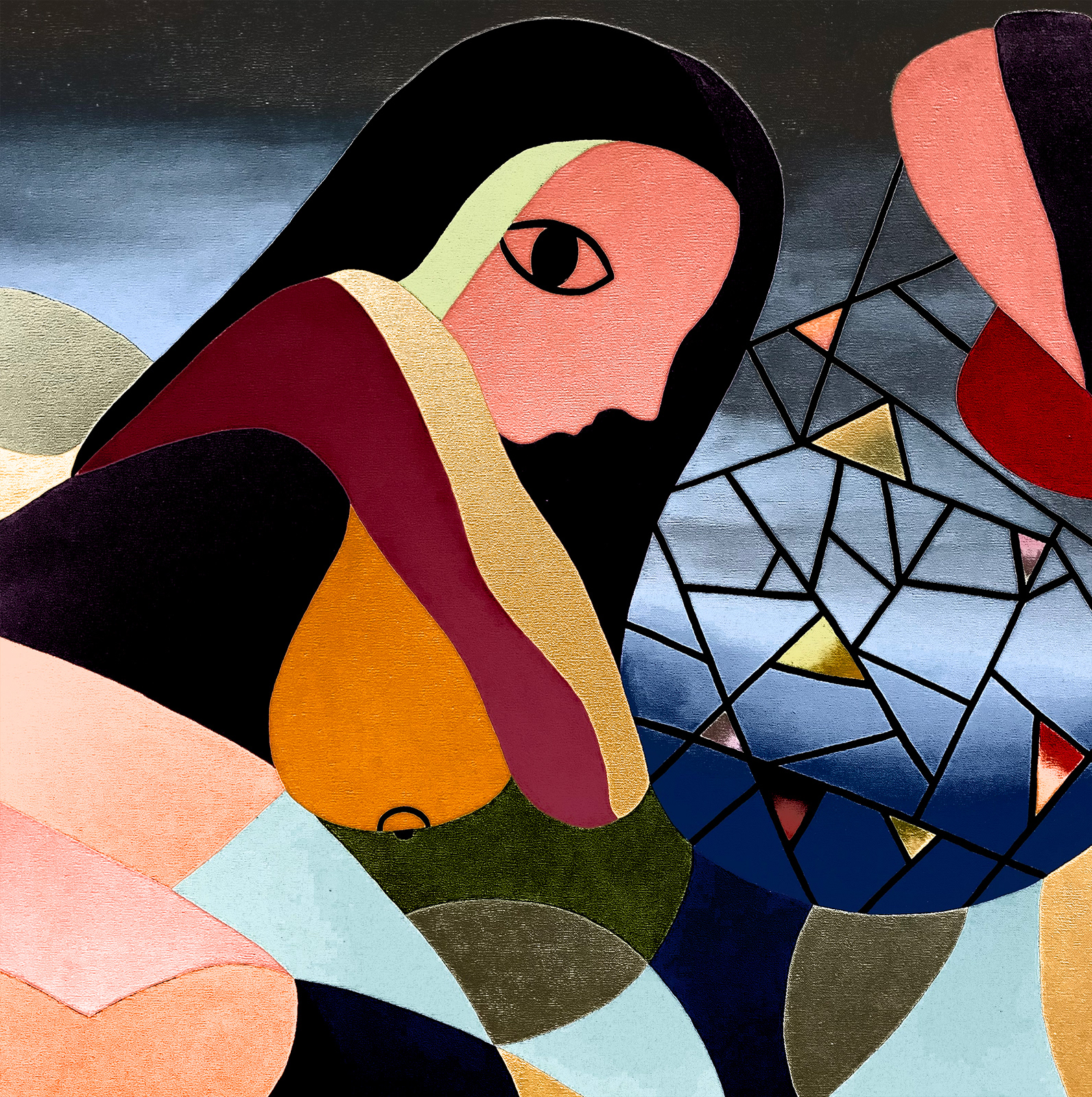 Gild The Beach is an acrylic tryptic painting that abstractly explores the scale of human connection to life's hidden gems.